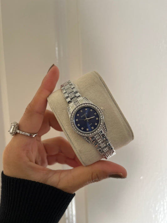 TWO TONE CRYSTAL STUDDED GREY DAIL WATCH