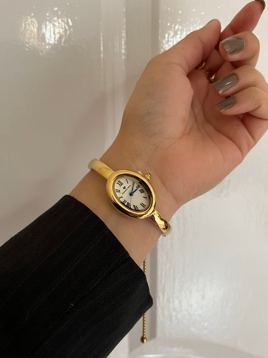 Vintage Oval Bangle Watch golden X white