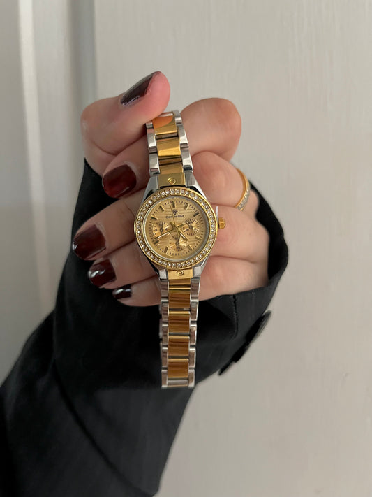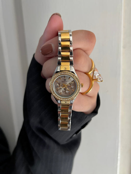 ✨CRYSTAL STUDDED TWO TONE WATCH-GOLDEN DAIL ✨