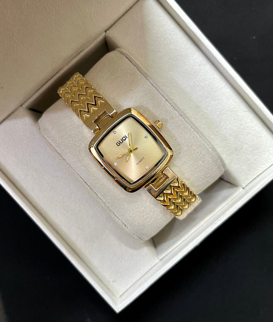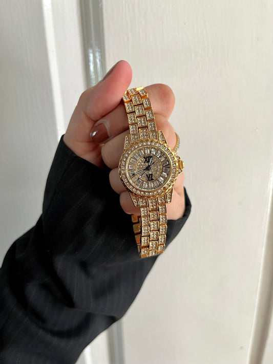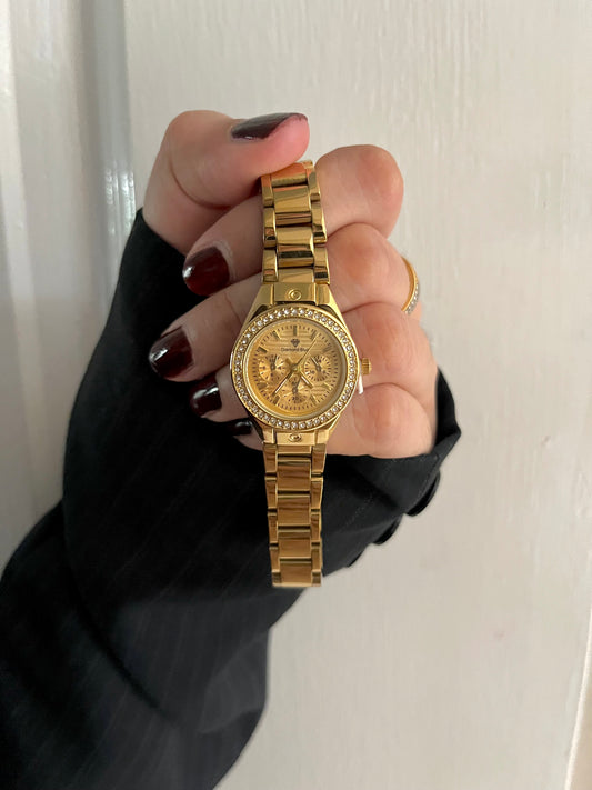 CRYSTA STUDDED GOLDEN DAIL WATCH✨