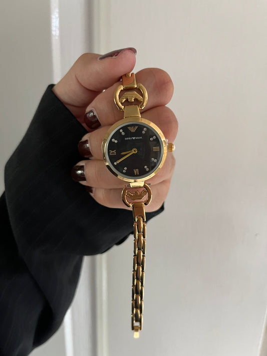 EMPORIO ARMANI BLACK DAIL WITH STONES WATCH
