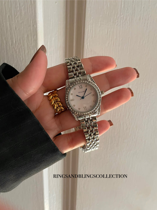 CRYSTAL STUDDED WHITE DIAL WATCH✨