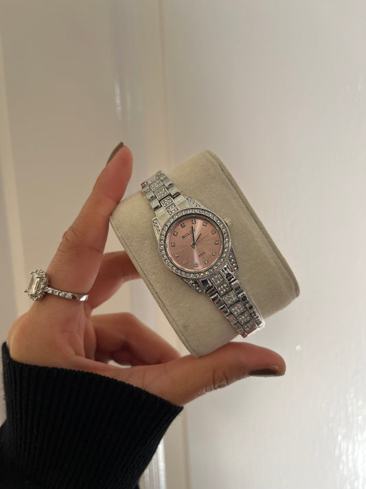 Crystal Frame Watch Pink Dail