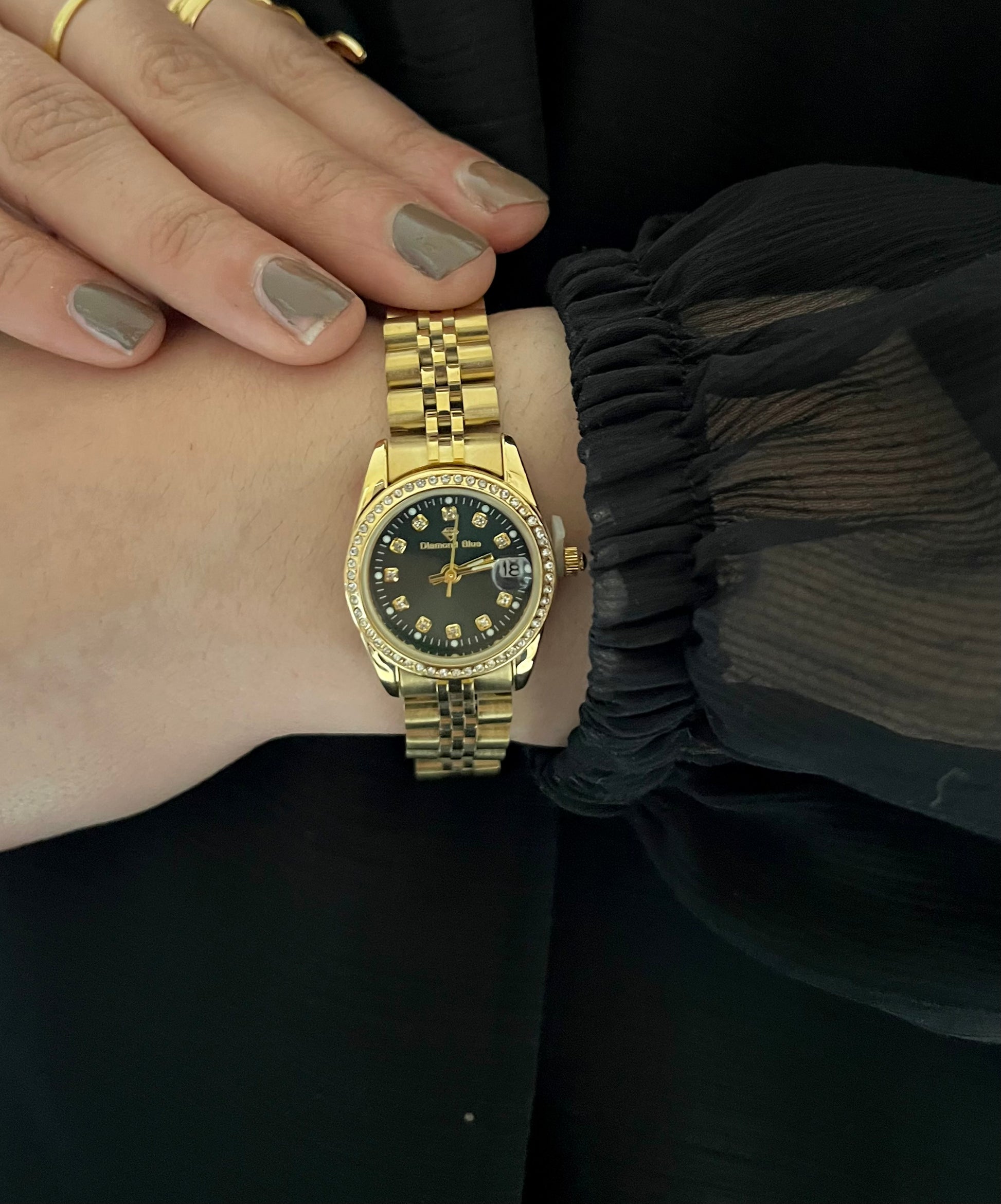 - Dial features zircon stones instead of numbers.